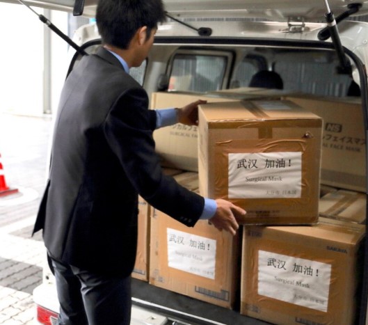 1月27日,武漢的友好都市——大分市,在得知武漢醫療用品告急後,向中國捐贈了100萬個口罩。