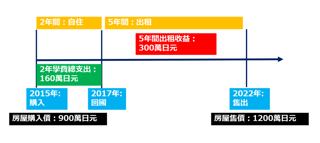 碩士留學期間入住2年後回國,又進行了5年的房屋租賃營業租金收入約300萬日元。該公寓於今年出售,其售價及5年間租賃收益,在剔除兩年學費和房屋的各類稅金管理費之後,純收益約400萬日元,這個收益額不僅覆蓋了學費還有多余盈收。