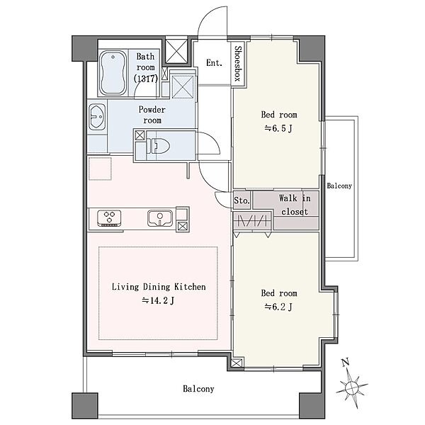 使用面積 61.38 ㎡ 房型 2LDK